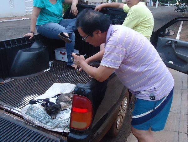 No final da tarde desta quinta feira dia 16, uma colaboradora da Ong SPA-Uraí informou que havia uma cachorrinha muito machucada, com bicheiras perto da linha do trem. Rapidamente uma equipe de Voluntárias Ana Flávia, Ana Cristina e Fernanda foram até local para averiguar a situação. Chegando ao local, se depararam com uma imagem impressionante. A cachorrinha estava numa situação lastimável. A bicheira já havia comido um de seus olhos, e já estava afetando o outro, uma parte de uma das patinhas foi arrancada, e ela respirava com muita dificuldade. Segundo relato de moradores, a cachorrinha foi jogada em um lixão perto da cidade, e foi se arrastando até chegar na vizinhança que de imediato entrou em contato com a Ong SPA. Rapidamente a equipe no intuito de salvar aquela pequena vida, foi até a casa do veterinário Reginaldo Takano para que pudesse avaliar melhor a situação. Segundo o Reginaldo, a cachorrinha já estava muito fraca, mesmo assim, fomos até a clínica para medicar-la . Porém infelizmente não tivemos êxito, e ela veio a óbto.