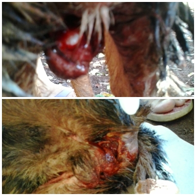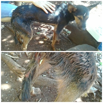 O estado do cachorro era grave, estava fraco, com uma fratura exposta na calda, ferimentos na perna, cabeça e nos órgãos genitais, apresentava um quadro bastante complicado. Não se pode apurar até o momento o motivo de tantos ferimentos, mas aparentemente presume-se que pode ter sido atropelamento.