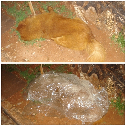 O animal ficou bastante ferido, sangrava muito pela boca e na tentativa de salvá-lo, as voluntárias ligaram para o Médico Veterinário Reginaldo Takano que passou as orientações de primeiros socorros, porém mesmo com o esforço de todos, o cachorro veio a óbito no local.