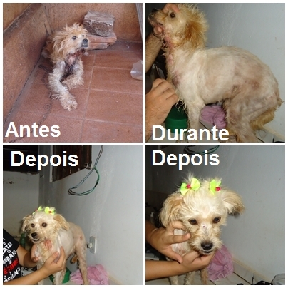Sabendo da situação, a minha madrinha apareceu lá na minha casa, me pegou , me levou ao veterinário, ai venho a primeira surpresa, aquelas perfurações no pescoço estavam cheias de bixos, nossaa foi um alívio quando os tiraram dali, eu ia morrer se eles não tivessem me resgatado para um banho, esse era o motivo pelo qual eu não deixei chegarem perto de mim da primeira vez, eu estava estressada porque ninguém cuidava de mim, e achei que quando eles apareceram lá, era pra me fazer mal também.