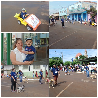 Hoje no desfile, estão alguns voluntários da ONG e amantes dos animais, demonstrando que devemos amar os animais e zelar pelo bem estar deles."